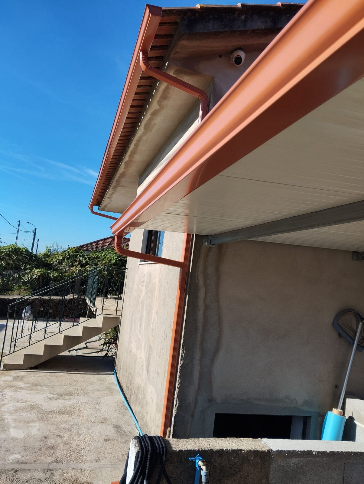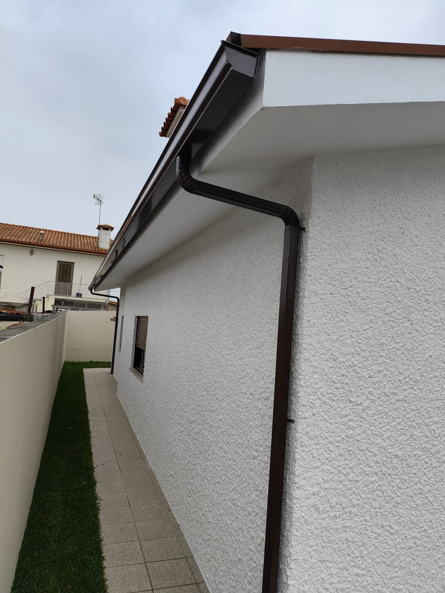 Fabrico e instalação de caleiras no local sem emendas nem soldaduras.
