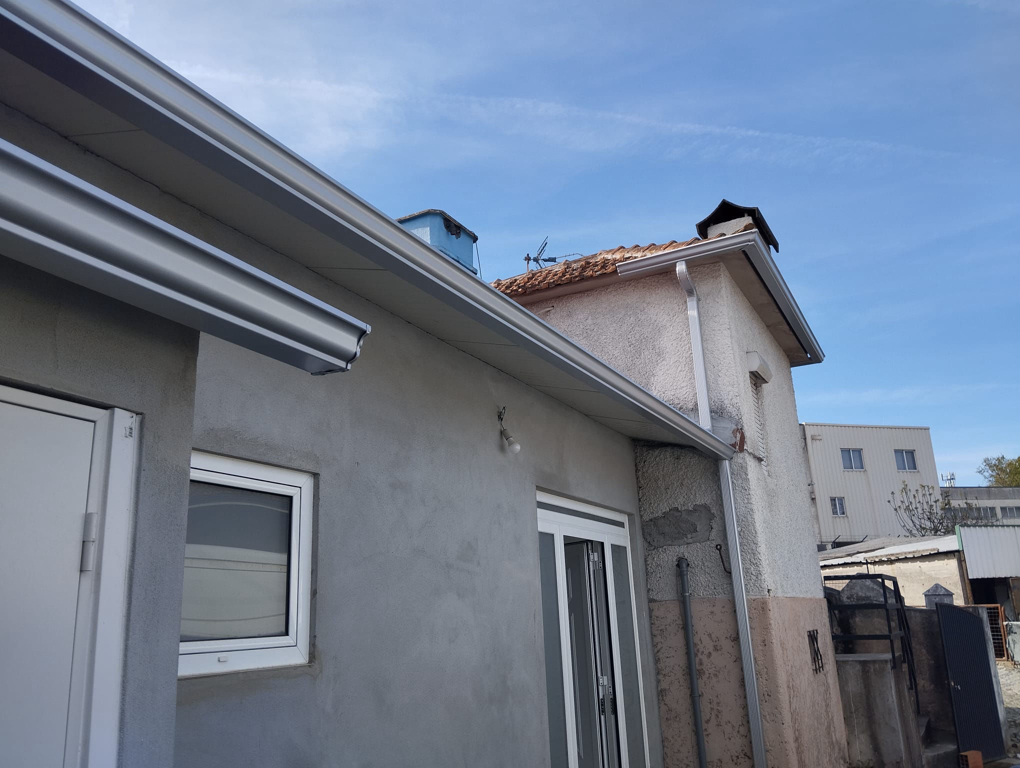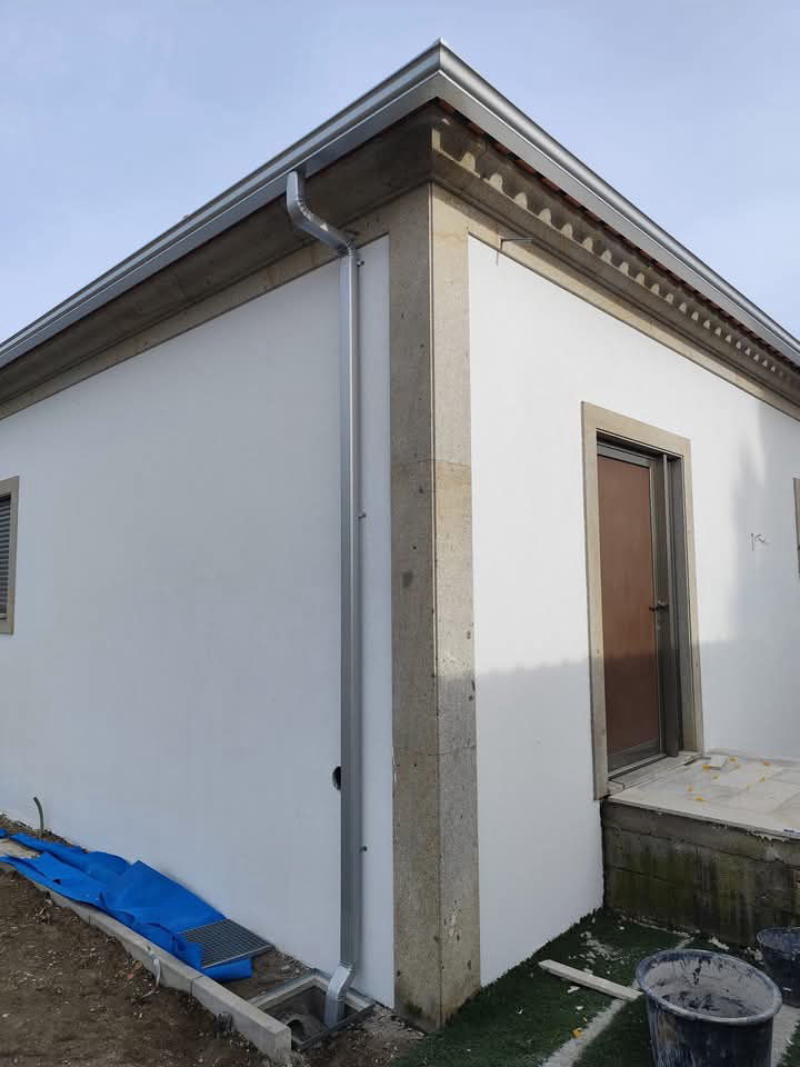 Fabrico e instalação de caleiras no local sem emendas nem soldaduras.